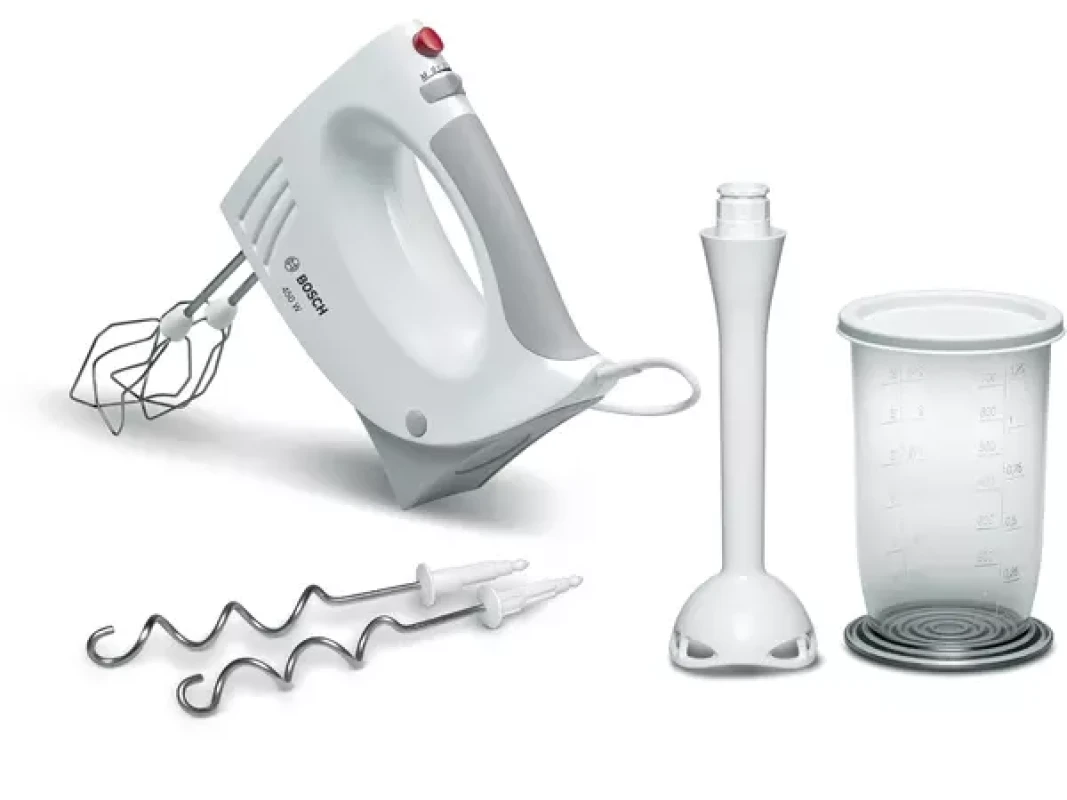 Polyvalent et performant, le Bosch MFQ3540 est votre allié pour cuisiner au quotidien : pâtisseries légères, sauces, marinades, ou pestos. Équipé d’un moteur de 450 W, de 5 vitesses + fonction turbo, il adapte sa puissance selon vos préparations. Accessoires complets inclus : fouets turbo, crochets à pétrir, pied mixeur plongeant, bol doseur. Ergonomie soignée grâce à une poignée Soft-Touch antidérapante : prise en main confortable, utilisable longtemps.