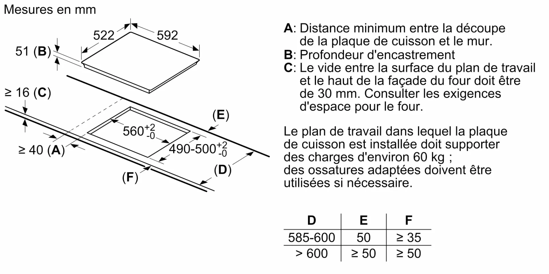 | Epaisseur min. plan de travail (mm) | 16 |